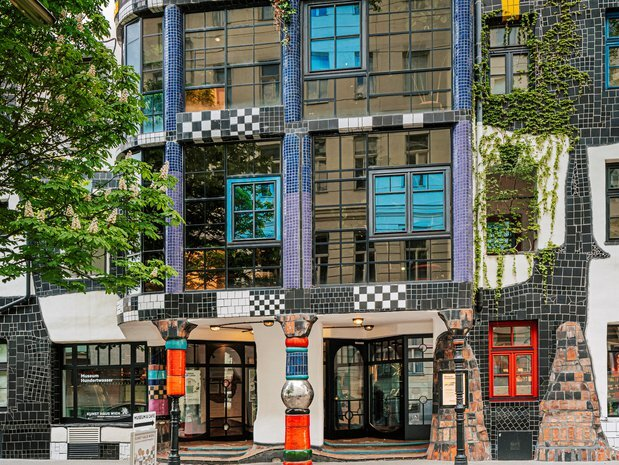 So ein Museum haben Sie bestimmt noch nicht gesehen: bunte Flächen, asymmetrische Formen und unregelmäßig angeordnete Fenster sowie eine grün wuchernde Fassade. Das ist das KunstHausWien. Im von Friedensreich Hundertwasser gestalteten Gebäude finden Sie die größte permanente Sammlung des österreichischen Künstlers und Visionärs. Darüber hinaus entwickelt das KunstHausWien seine Ideen weiter. Als erstes Grünes Museum ist es das Zentrum für Kunst und Ökologie. Mit hochkarätigen internationalen Ausstellungen zeitgenössischer Kunst, die sich damit beschäftigen, wie Menschen ihre Umwelt prägen. Und es ist eine Plattform, um gemeinsam nachhaltige Lösungen für unsere Zukunft zu gestalten – auch mit Ihnen, wenn Sie möchten.